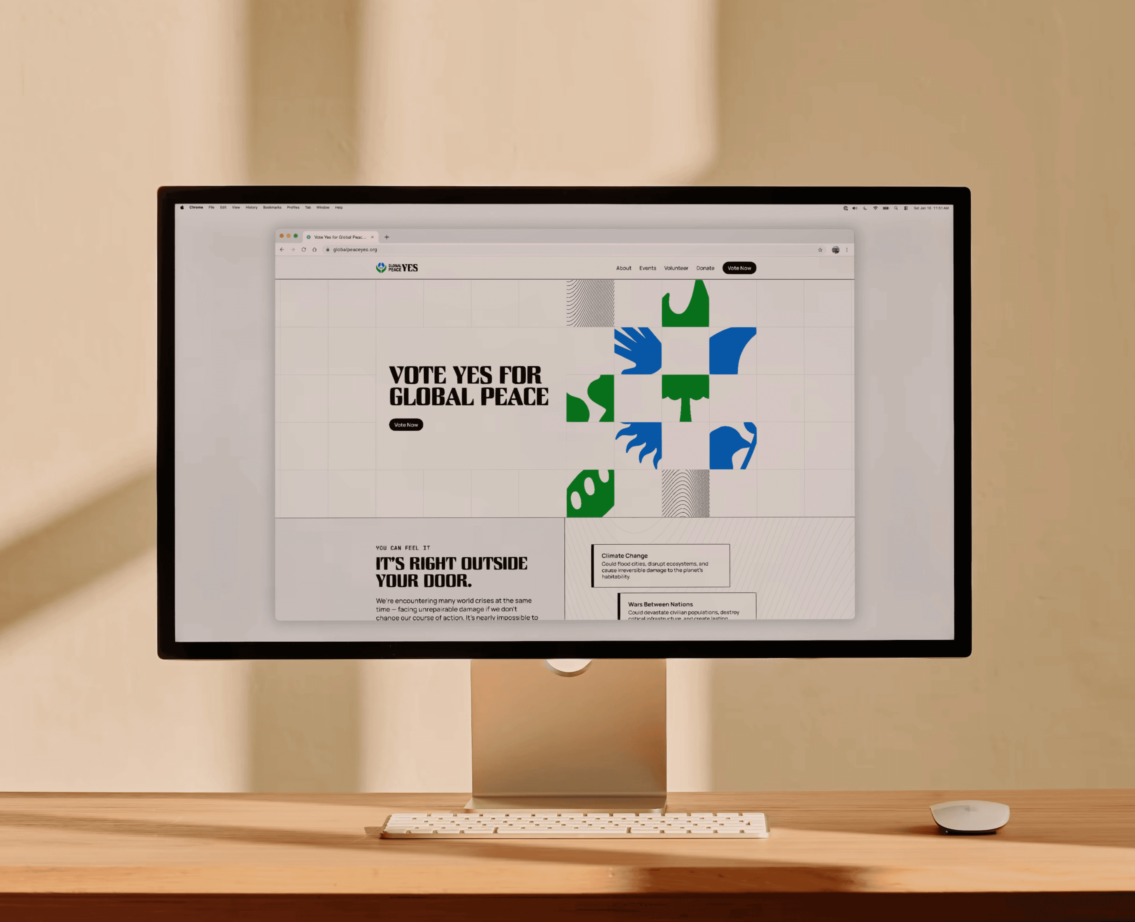 Brand identity, website, event posters, album cover, and art direction for a non-profit gathering votes to create peace infrastructure in governments. Cinematography by Mike Godlewski.